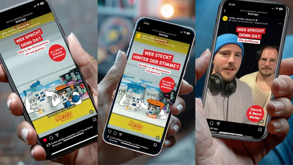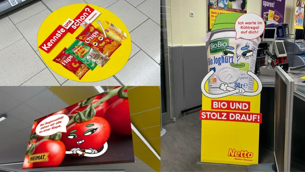 Auf allen Touchpoints begegnet uns die Produktbande: Im TV, Online, auf Social Media, am POS, auf Großflächen, Out of Home oder in Tageszeitungen. Kampagne für Kampagne gewinnt unsere Bande mehr und mehr Fans für Netto.